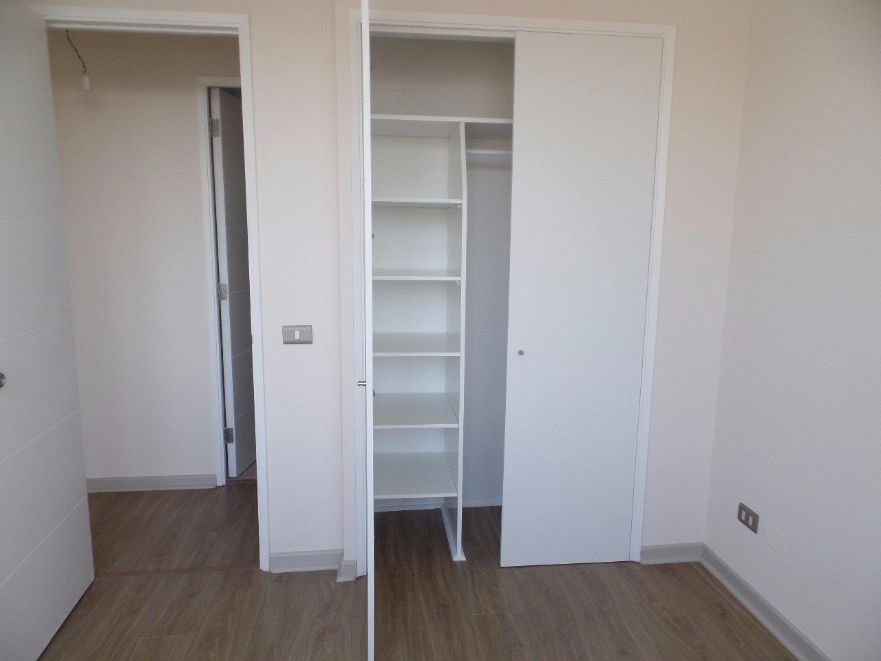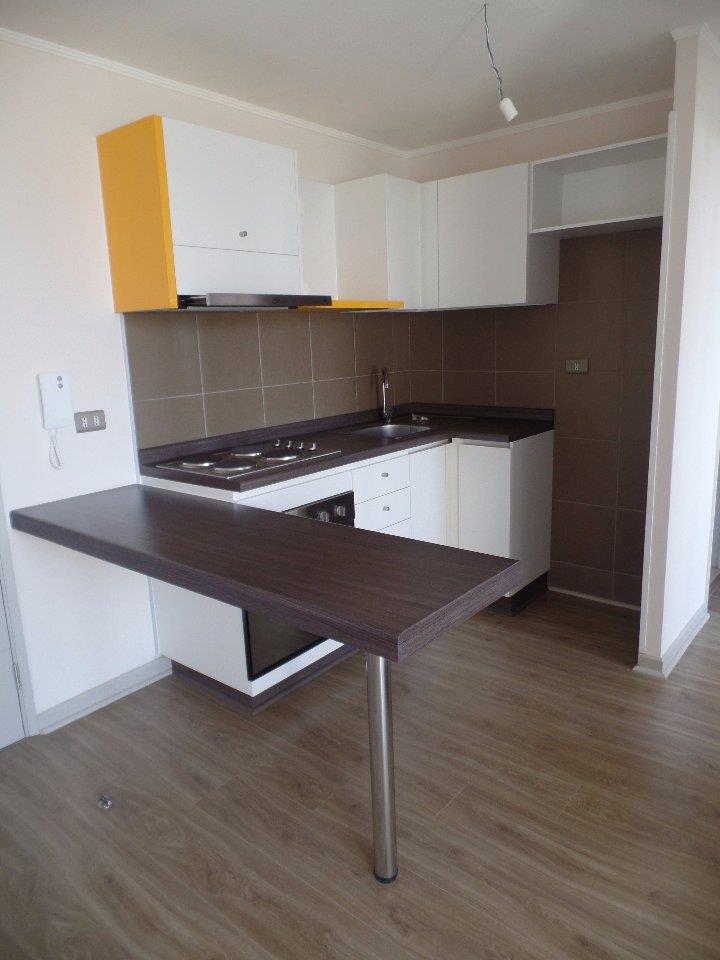 Consta de dos dormitorios, uno matrimonial mas uno pequeño (cama una plaza con velador), ambos con closet. Baño con tina, conexión para lavadora y termo eléctrico con sistema de control de horas. Cocina americana, con encimera de cuatro platos y horno eléctrico. Living comedor con salida a balcón pequeño.