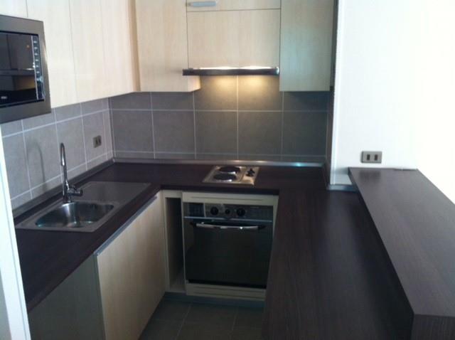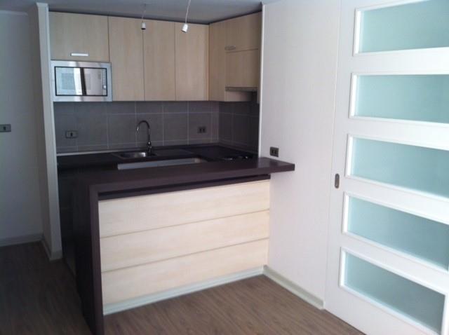 Departamento en quinto piso cuenta con living comedor, un dormitorio con baño en suite y walking closet, cocina americana con piso cerámico totalmente amoblada, cocina doble encimera y horno eléctricos, calefactor eléctrico.